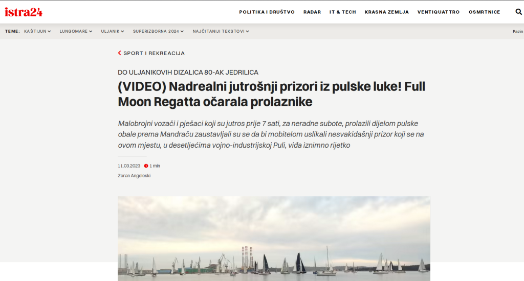 FULL MOON CLASSIC U 2024. godini, u suradnji JK Delfin i Udruge Molaj Cimu, nakon gotovo stotinu godina ponovno je oživljena maritimna baština – Pula se vratila tradicijskim barkama i ispisala novo poglavlje svoje pomorske priče.