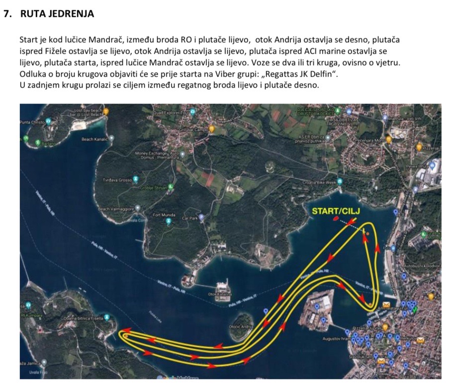 - 15:00 - 15:30h skippers meeting u lučici Mandrač, pulska luka