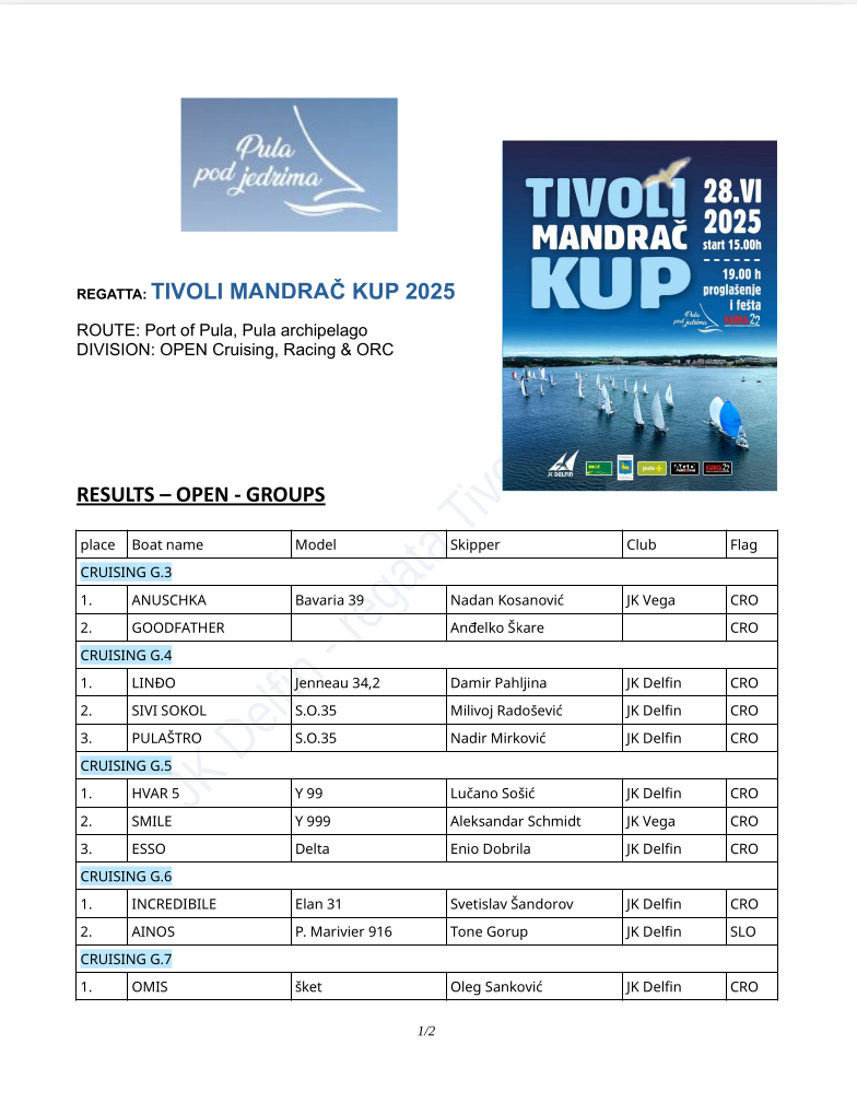 REZULTATI - TIVOLI MANDRAČ KUP - 2025